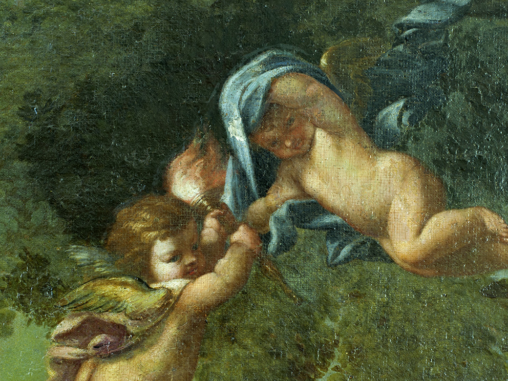 Durante questa fase, è emerso un putto che era stato completamente ricoperto da un ritocco perché molto lacunoso. Di seguito la sequenza delle foto rende esplicito il ritrovamento.